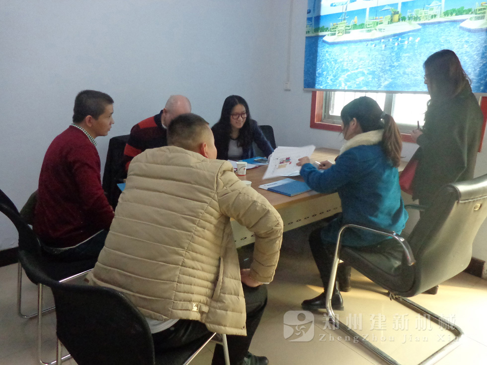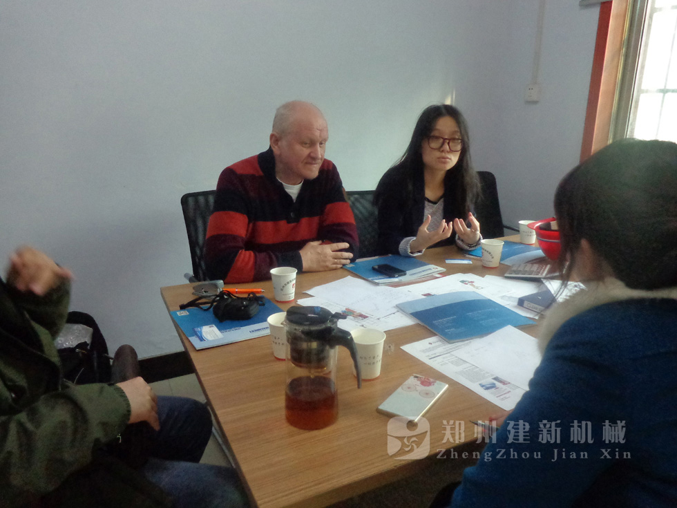 2014年11月,来自俄罗斯的客户来到郑州建新公司签订了两套时产120方混凝土搅拌站设备的大订单,下图为建新公司销售部刘经理、经理带客户参观建新公司的生产车间及成品货场。
